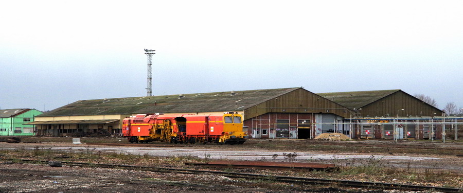 vue sur la basse de travaux arrière de Longueau avec la Tirefonneuse Geismar Stumec TC n°1693342 - Colas Rail 444