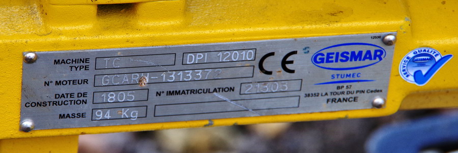 Tirefonneuse Geismar Stumec TC n°de moteur GCARH 1313372 Agrément SNCF DPI 12 010