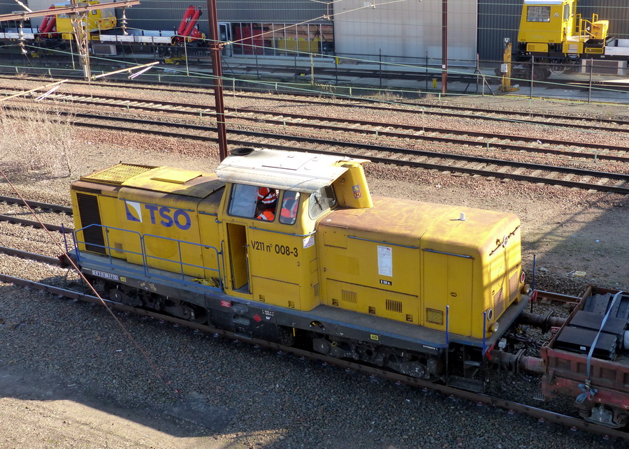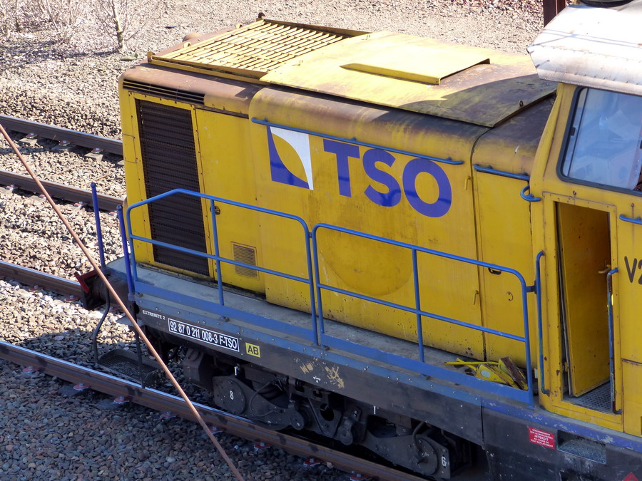 La voici à Saint Pierre des Corps le 27 février 2019 avec son nouveau marquage 92 87 0 211 008-3 F-TSO et sur la cabine V211 n°008-3