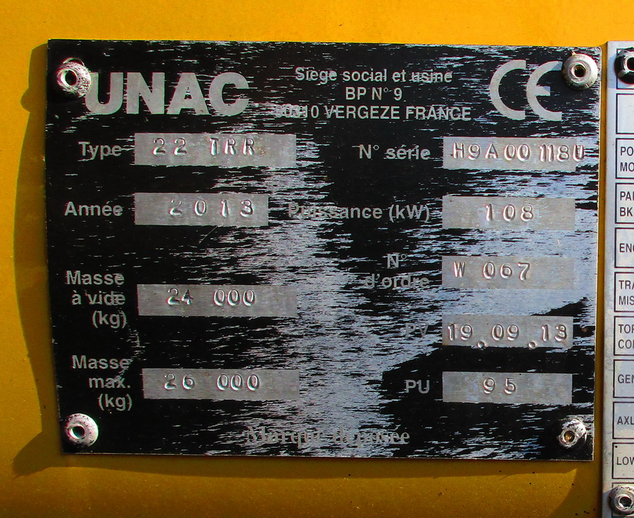 Pelle Rail route UNAC 22 TRR n°H9A 00118 U série W067 - 2013 de l'Infralog de Limoges Lorry 2