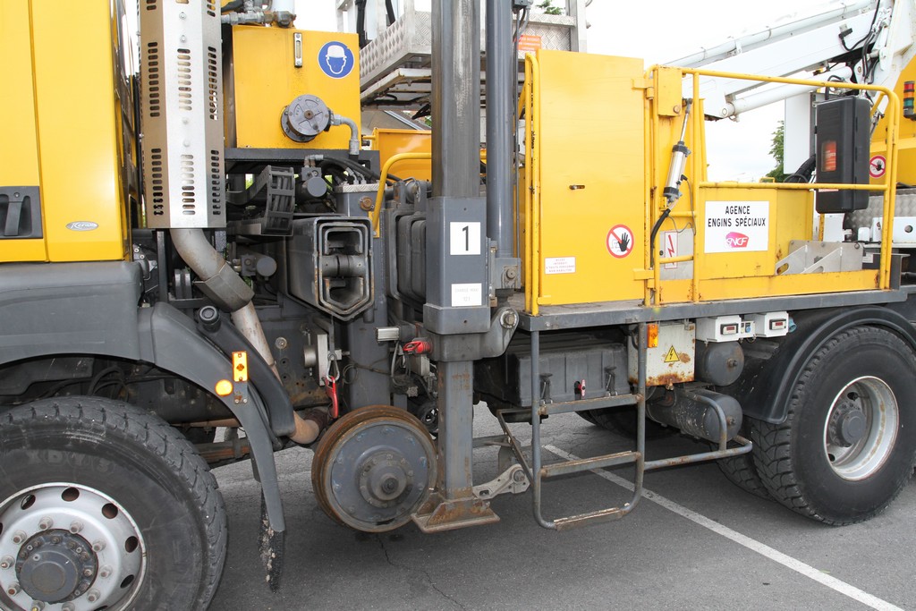 On voit bien l’utilisation des bras télescopiques pour passer du mode rail en mode route.