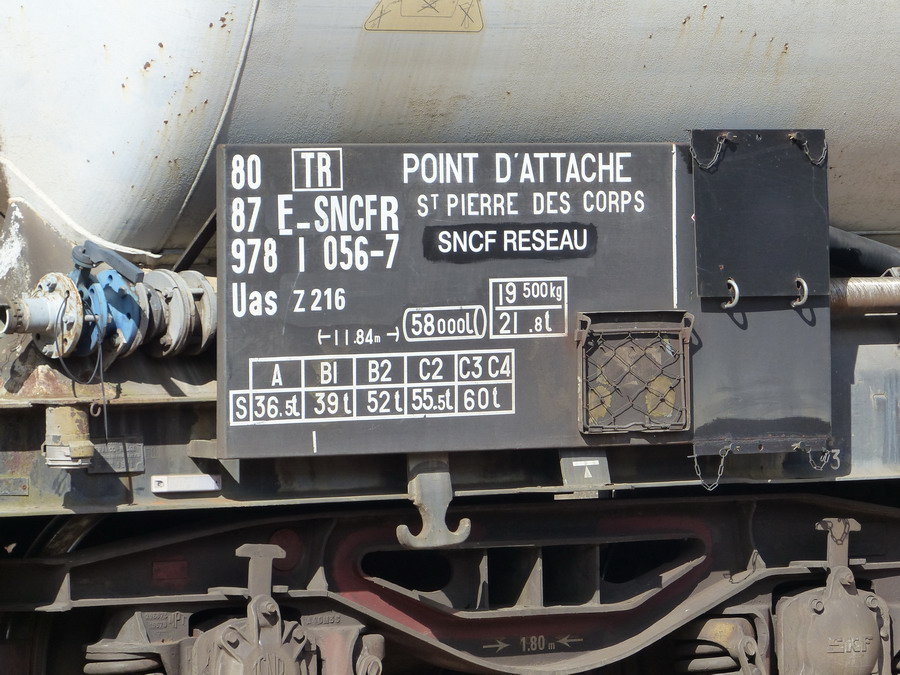 Voici le wagon citerne 80 87 978 1 056-7 Uas Z21 6 F SNCF-TR Point d'attache St Pierre des Corps