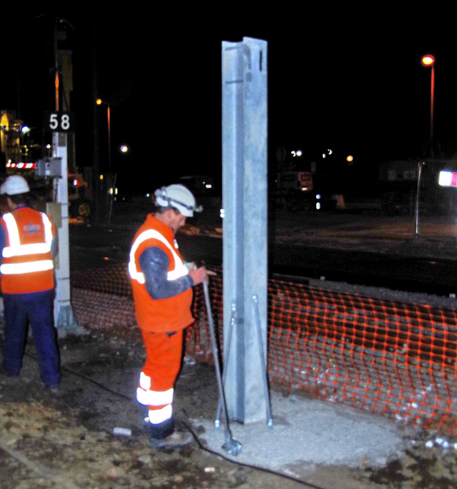 Poutrelle d’ancrage pour le le câble d'encrage de la caténaire au PN 58 à Chauny nuit du 06 au 07-05-2019