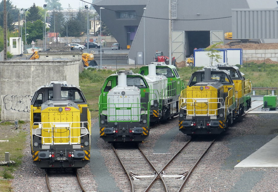 Situation sur le site de maintenance des Vossloh atelier IMATEQ à Saint Pierre des Corps le 01 mai 2019 avec 5 DE 18
