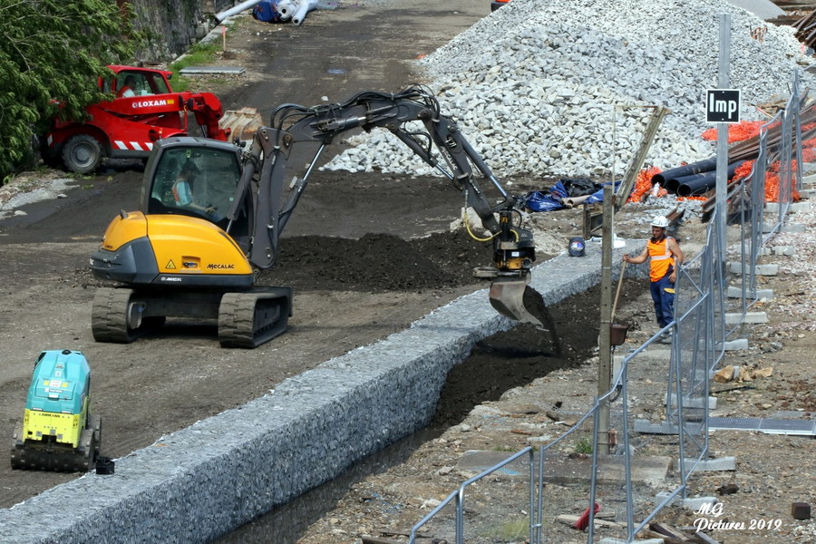 suite des travaux avec une Pelle Mecalac le long du coteau pour une nouvelle voie d'accès le 12-06-2019