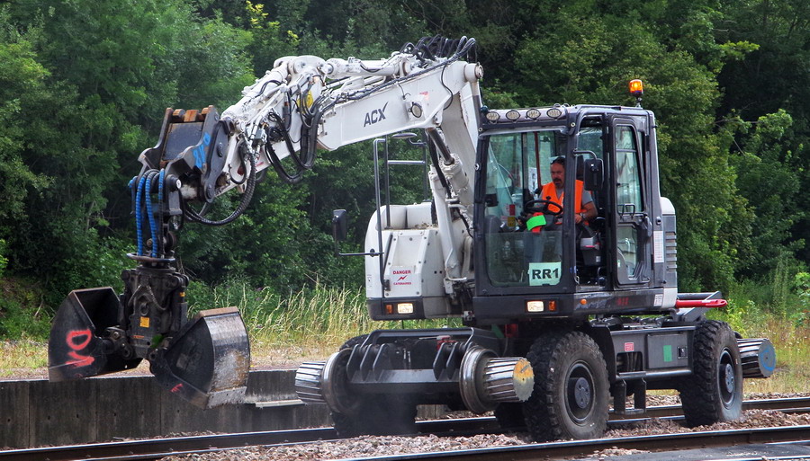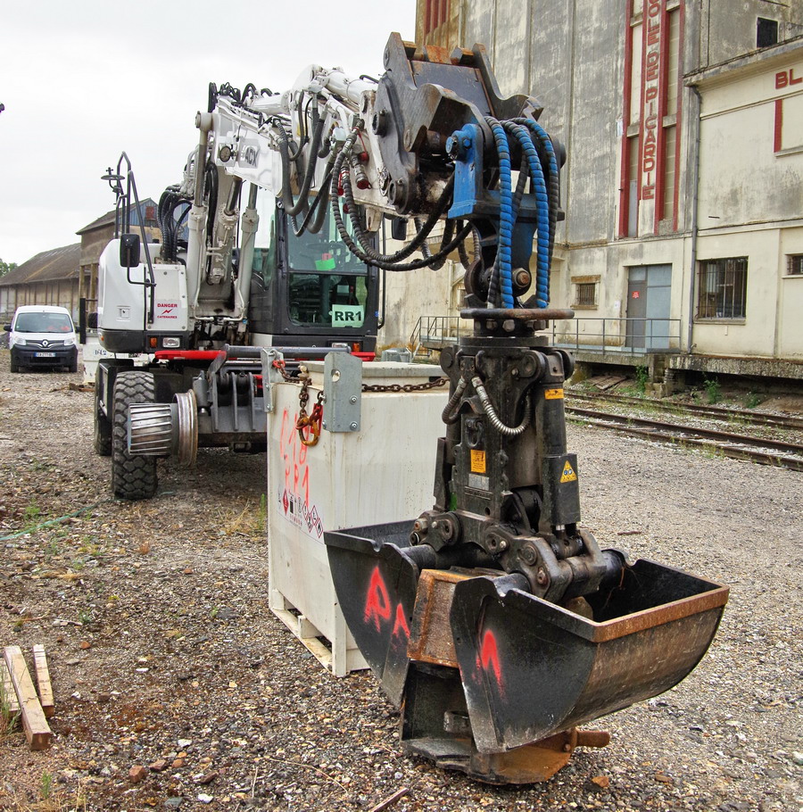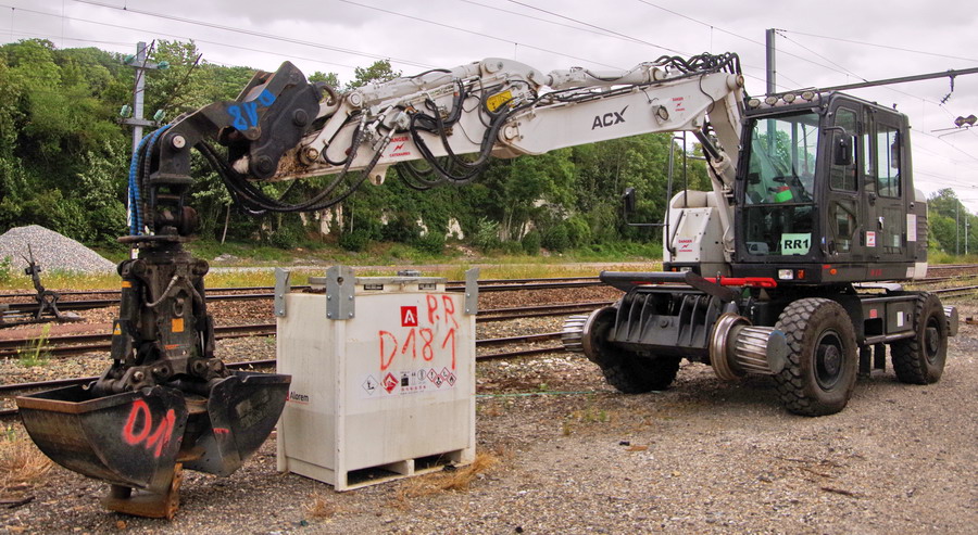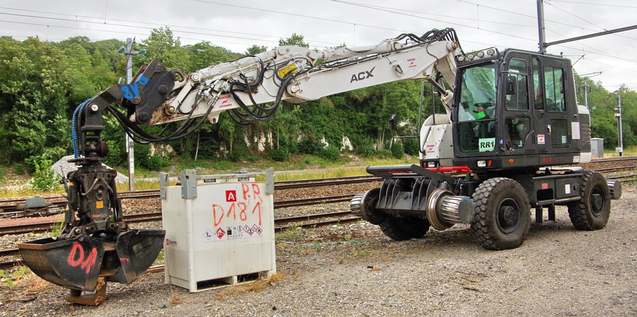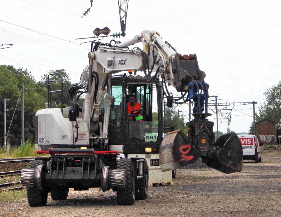 Photos de Bruno Delaplace en gare de Poix-de-Picardie avec la Pelle ACX23RR de Delcourt Rail D19
