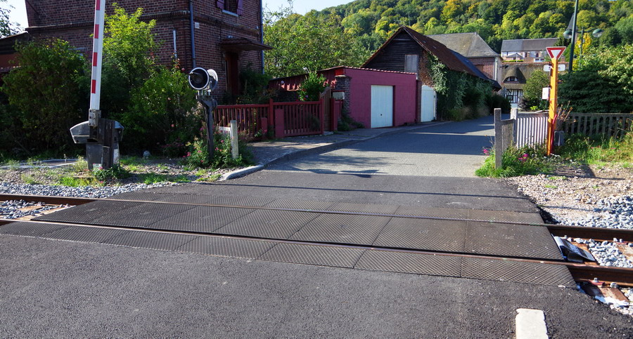 et on remonte toujours la ligne et maintenant le PN n°180 à Longroy (76) PK 167+681 avec l'entrée du chantier PRS n°33