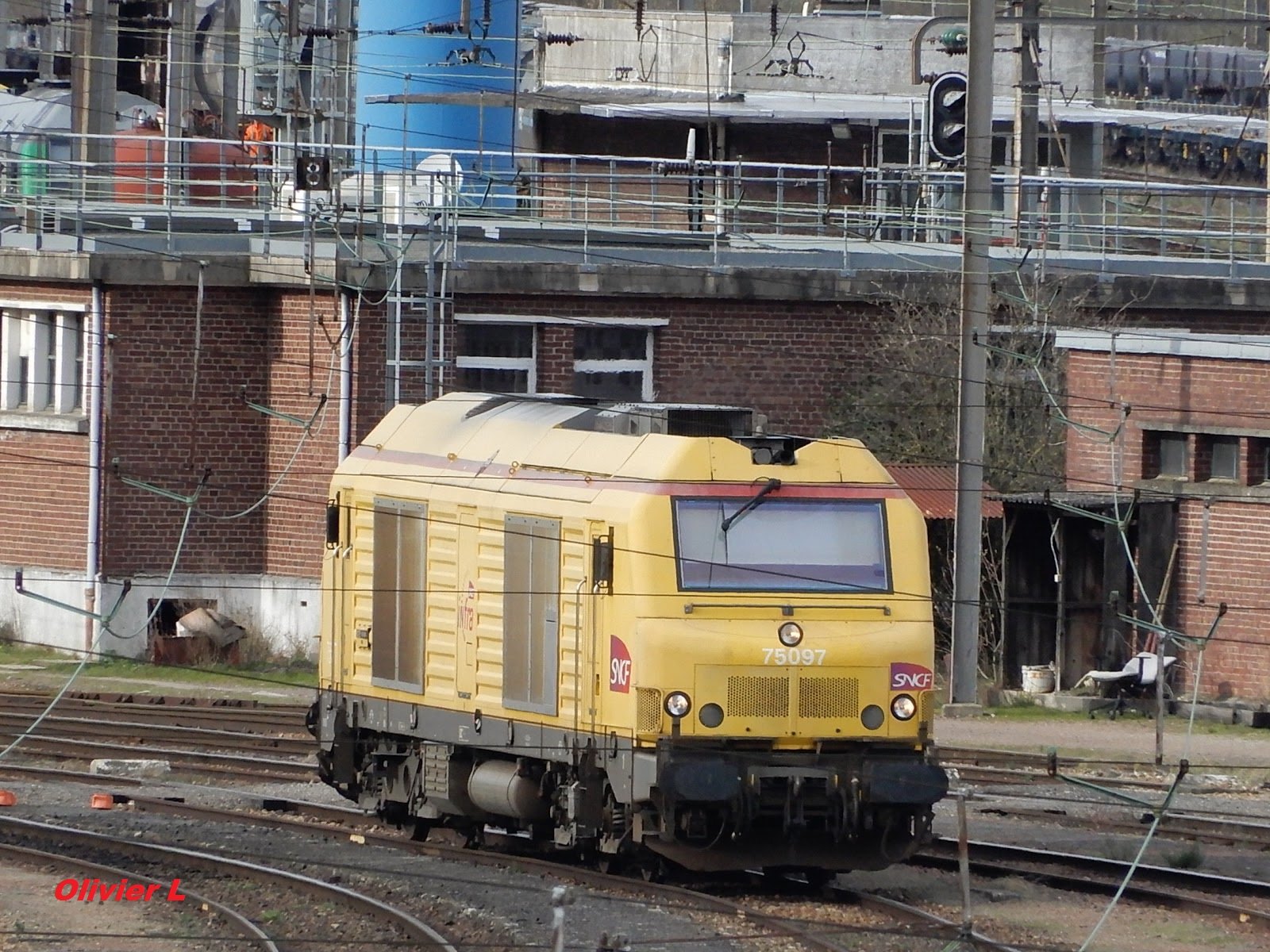 Voici la 75097 avec la 675088 sur la zone de garage des rames Infra/SNCF de Saint Pierre des Corps le 17-10-2014