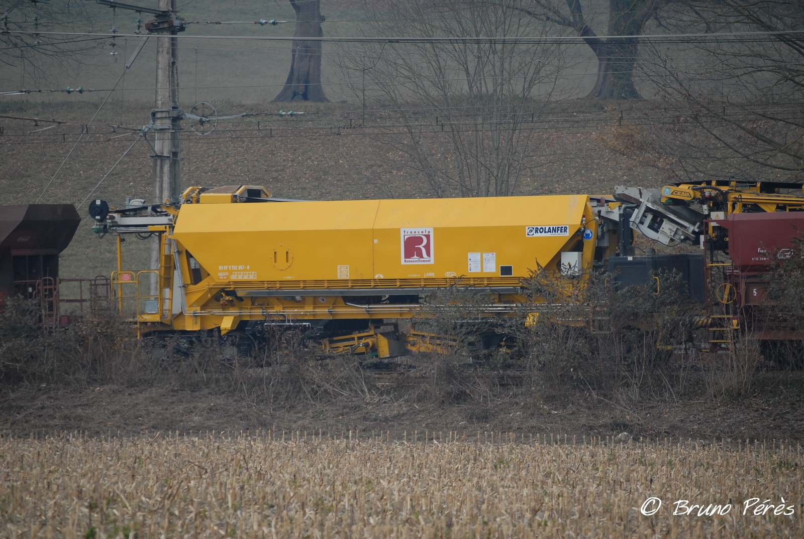J'ignore son utilité, mais je suppose que sous le châssis se trouvent deux tapis orientables capables de répartir du ballast sur la voie si besoin. Je n'ai hélas pas pu m'approcher davantage (photos prises au télé-objectif).