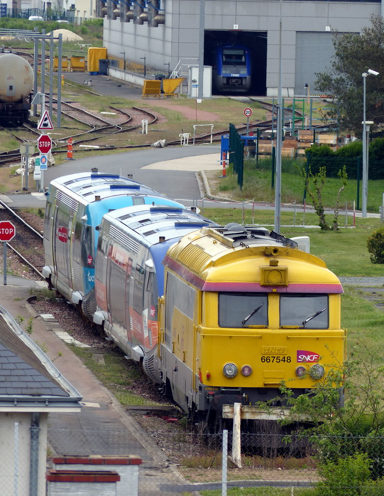 dans le dépôt de Saint Pierre des Corps le 08-05-2015 avec les X.73811 "Poitou Charente' / X.73513 "Pays de la Loire" de Nantes