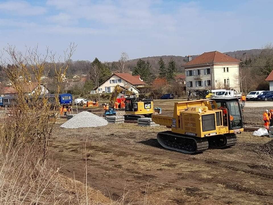 la pelle Cat de chez Railshine arrive lundi à l'Hopital du GrosBois (info du chauffeur)