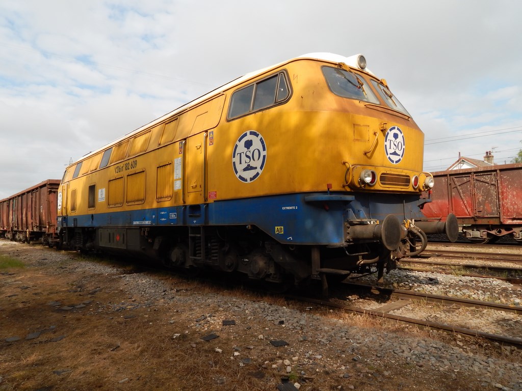(Présente dans le cadre de la reconstruction de Oloron-Bedous - voie en cours de pose sur qq km au départ d'Oloron, mais jusqu'à Bedous, en de nombreux endroits, la plateforme est encore loin d'être prête. Sont aussi présentes sur ce chantier les ex-V 100 [br 211] 182.505 et 572).