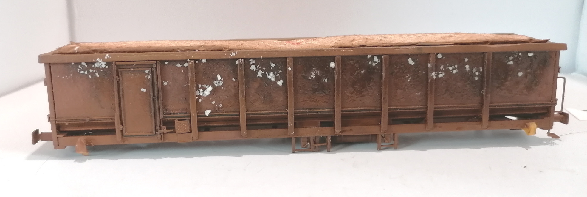 Les côtés du wagon tombereau E74 refait en platicard et avec des échelles SMD