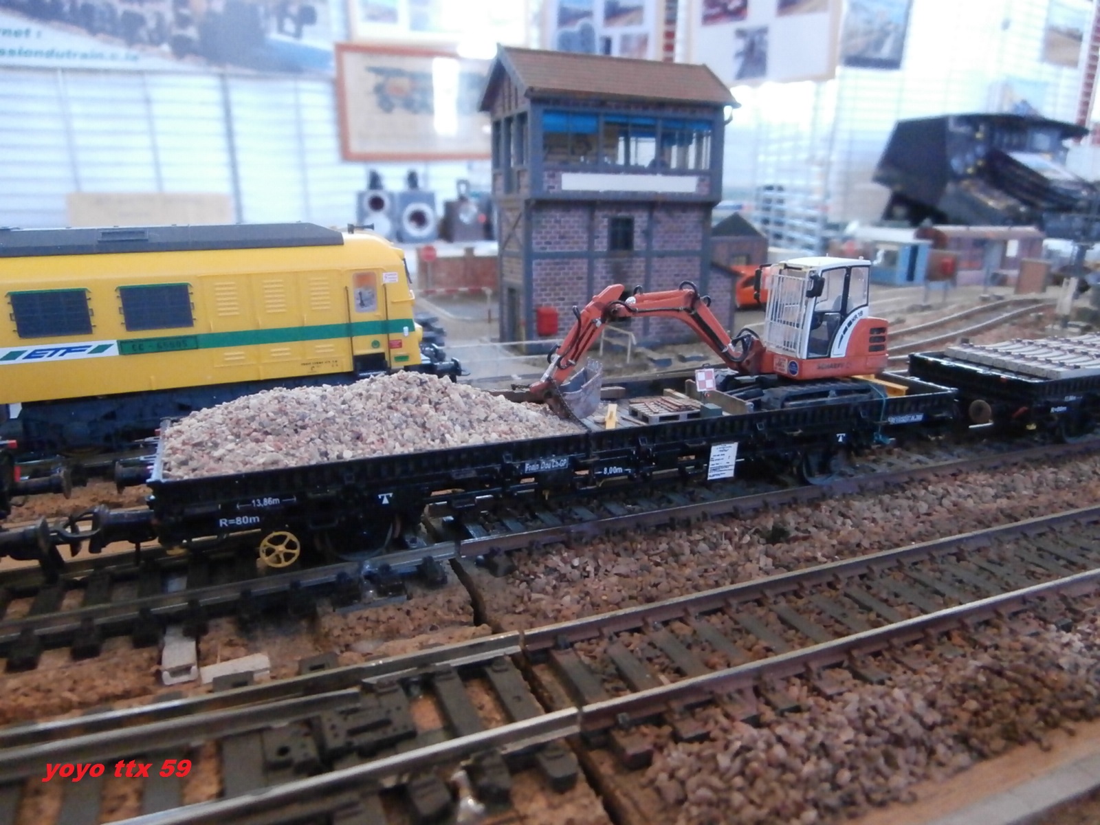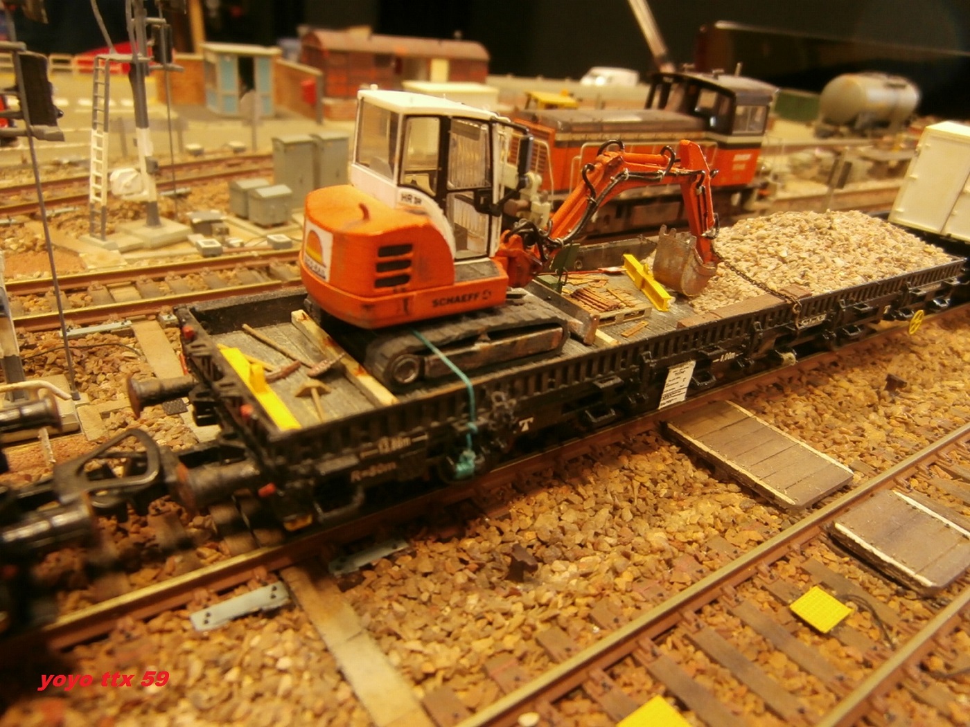 Merci beaucoup.Pour la mini-pelle il s'agit de de la référence " 658 01 " de chez wiking.Maintenant elle est difficile a trouver dans le commerce.Mais si tu cherche bien ,il est encore possible de la trouver ( la preuve avec Jean Claude " MFD 59 " ).Pour le chargement :-Les palettes sont des " Preiser " retravaillées .(nervures du bois , peintures , patine et évocation des clous ( pour ceux qui ont mal vues