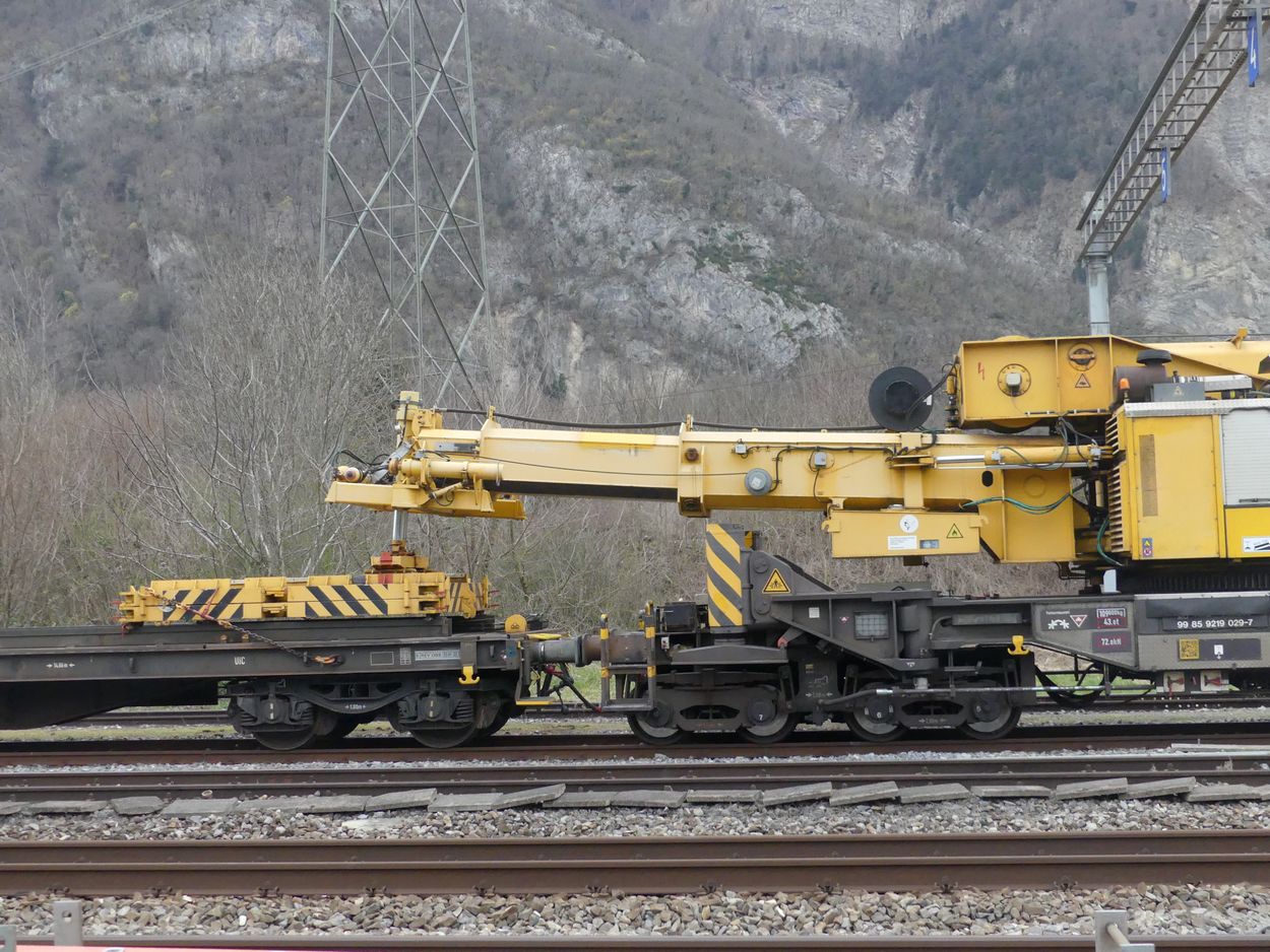 les CFF viennent de terminé des travaux de renouvellement d'aiguillage en gare de Roche VD. Pour charger les anciennes aiguilles, les CFF ont fait appel à la Grue Vanomag Kran IX.