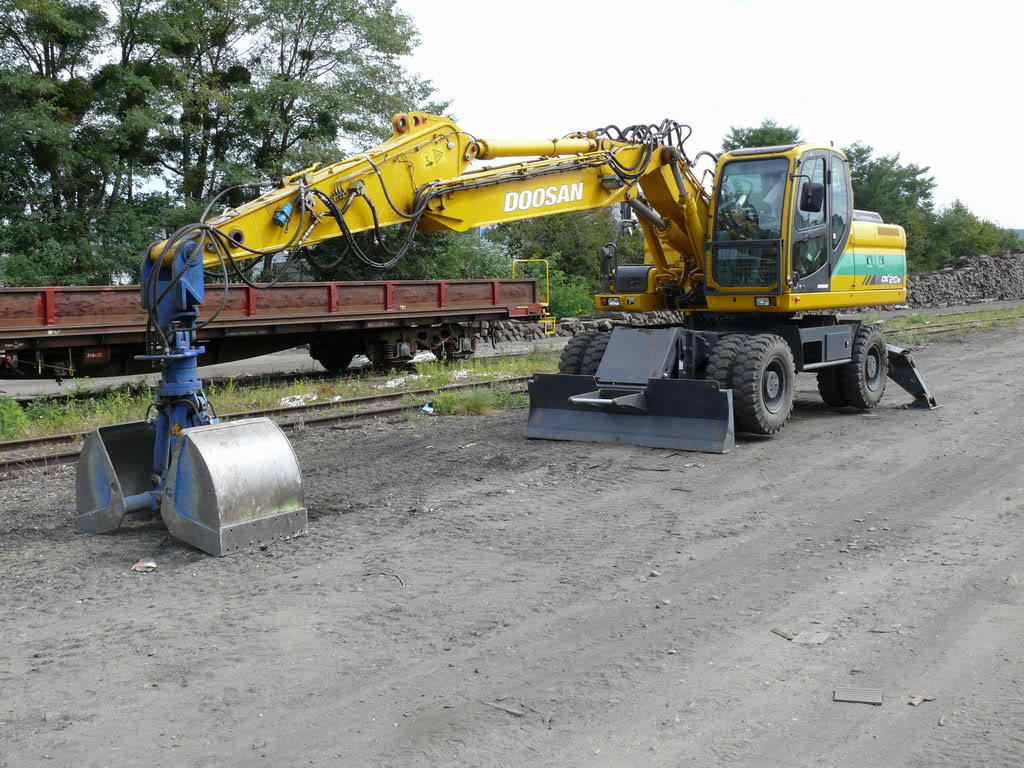 Ce constructeur prend de plus en plus de place chez les entreprises ferroviaires avec les pelles Rail-Route mais avec le matériel classique également.Cette machine se trouve sur le chantier de Verneuil sur Seine.