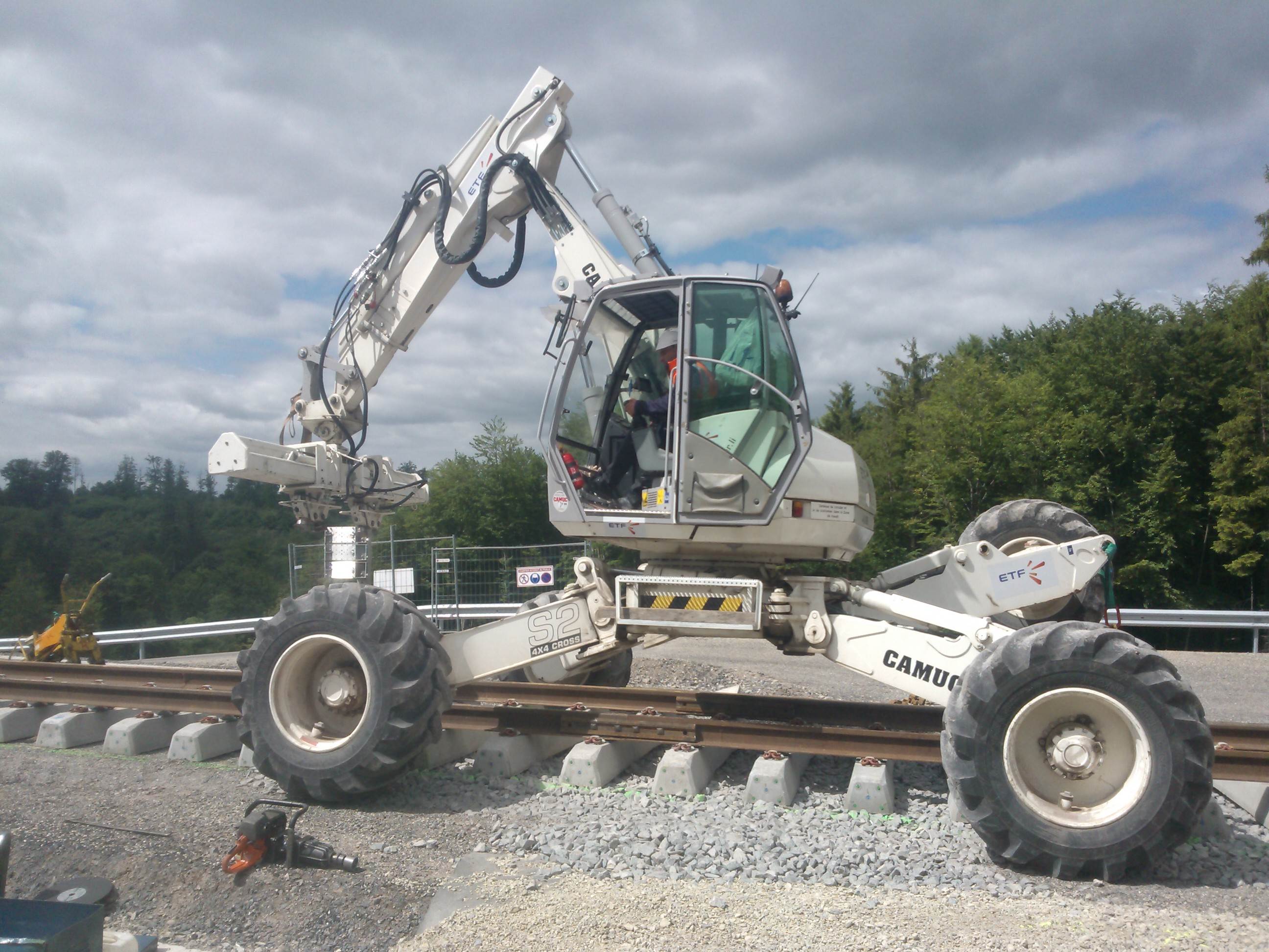 Nouvel engin arrivé sur les chantiers LGV: permet de rouler littéralement au dessus de la voie...et nécessite des nerfs de pelleur d'acier et une (très) bonne coordination des 5 membres...