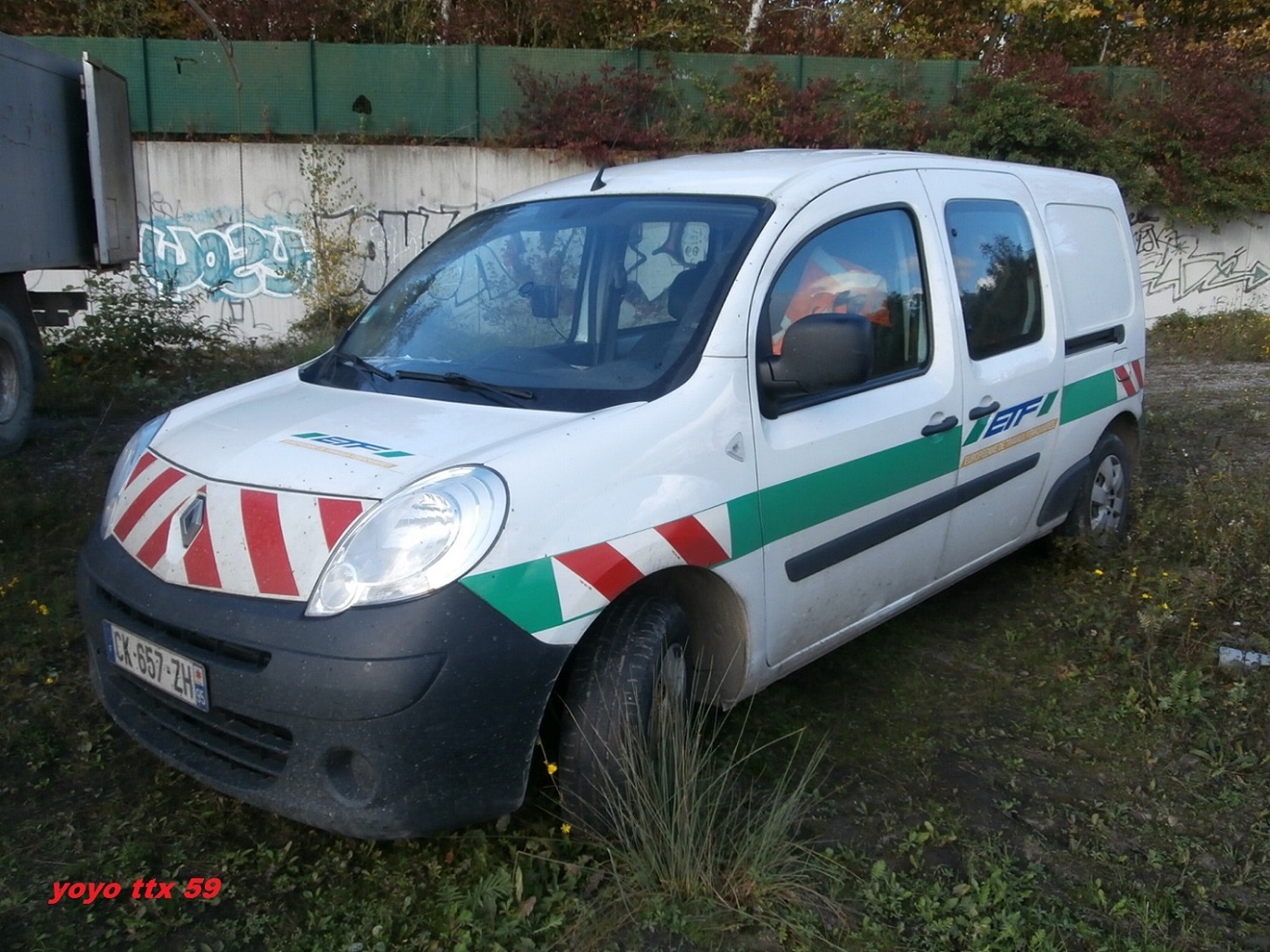 Voici le Renault Kangoo " CK 657 ZH 95 " .Photos prise le 11/10/2014 sur le chantier de changement d'appareils de voies a Hazebrouck au niveau du poste 2 :Et voila .