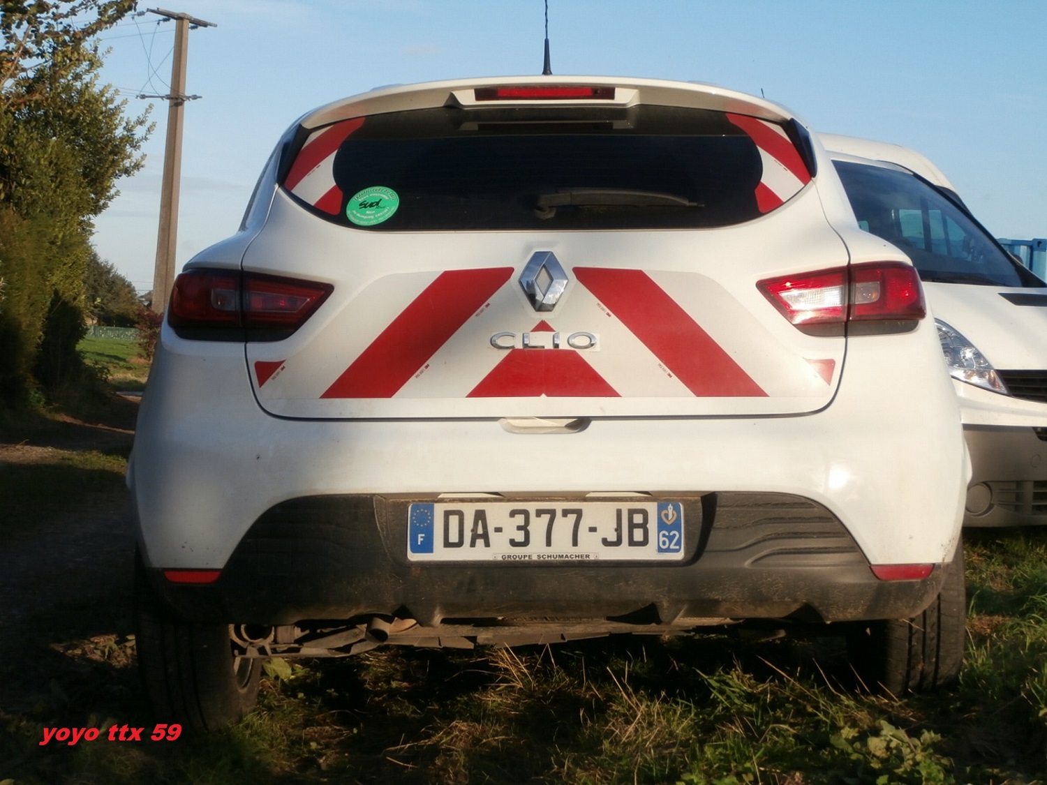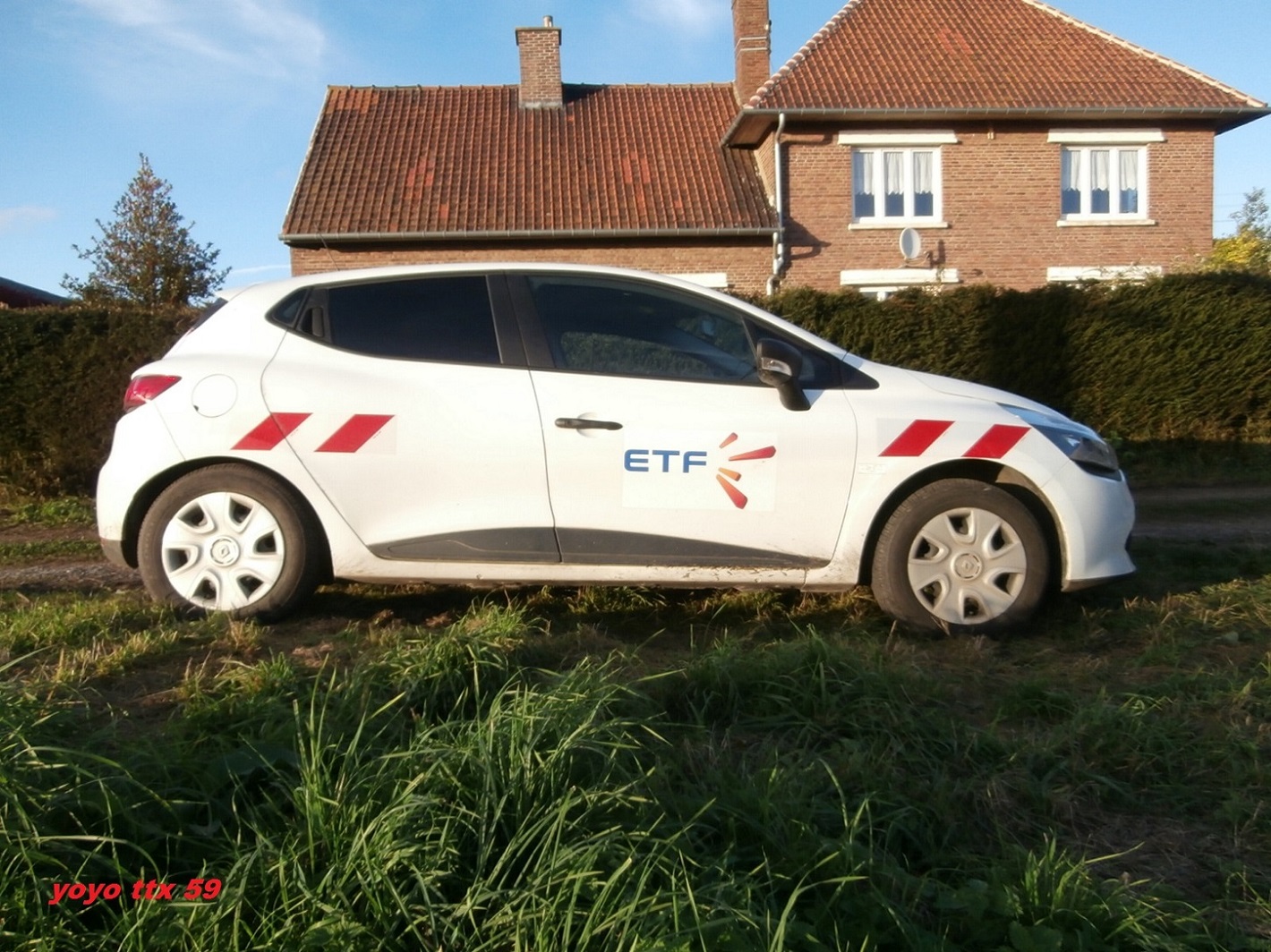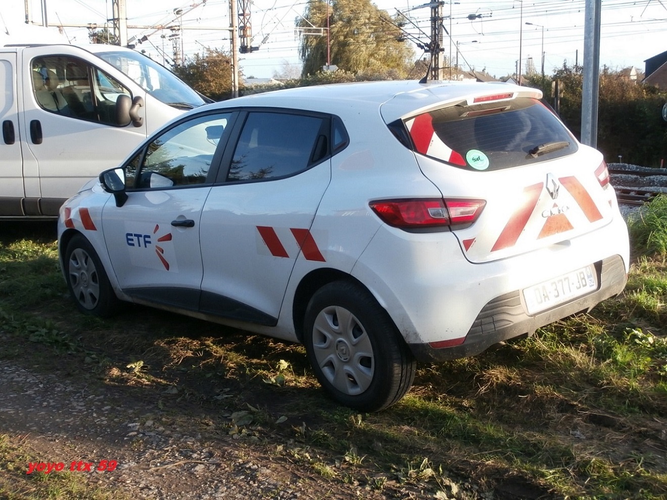 Voici maintenant une petite Renault Clio toute récente .Il s'agit de la Clio DA377JB 62a Hazebrouck le 19/10/2014 sur le chantier de changement d'appareils de voies :A suivre :