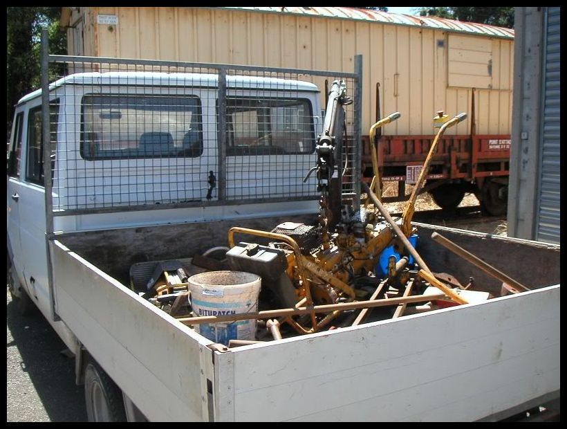 Celui ci est de type 35-8 utilitaire avec double cabine, il a été bricolé maison avec ajout d'un petit treuil pour sortir le matériel lourd, tirefonneuse par exemple.