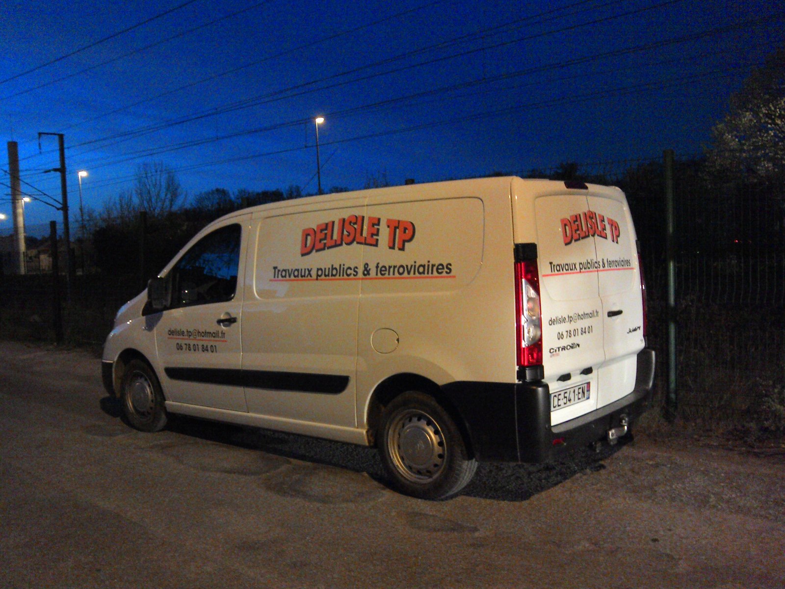 Fourgon de l'entreprise Delisle TP entrepreneur indépendant du sud-ouest.