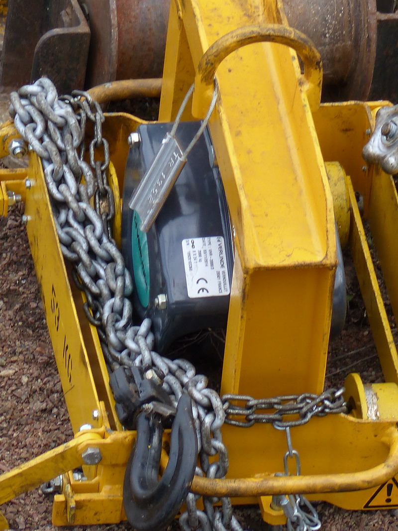 avec 2 portiques Geismar CMU 1600Kg du Crem Région de Tours et d'un palan à chaine manuel pour le remplacement de rails de petite