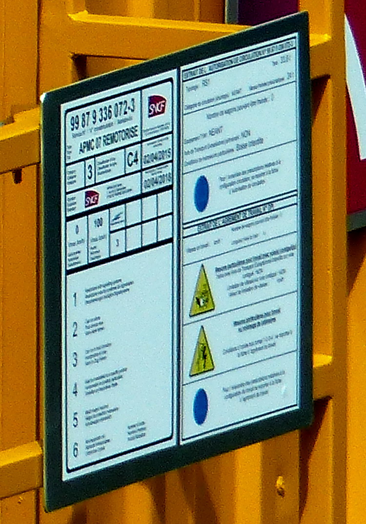99 87 9 336 072-3 APMC 07 Remotorisé- SNCF-TR (ex APMC 22 SNCF-TR)