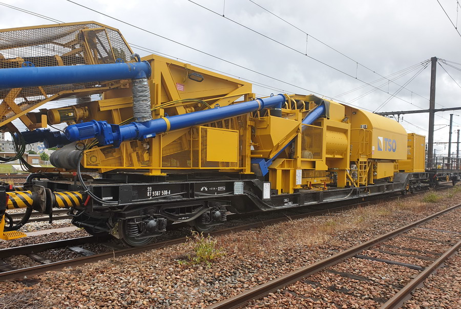 Il s’agit d’un train béton qui appartient à TSO et qui a été conçu pour la pose des voies du tunnel sous la manche. Depuis cet emblématique chantier ferroviaire, le train béton est sorti à deux reprises pour des chantiers ferroviaires. Pour celui de Crossrail, TSO a décidé de le repenser entièrement et de l’adapter à ce projet d’infrastructure au cœur de Londres. Le bureau d’étude Corea, concepteur du train d’origine et de la nouvelle version et les ateliers d’Occitanie ont réalisé à la demande de TSO, une véritable reconstruction et ont livré un tout nouveau train béton qui a franchi à nouveau la Manche à la fin du mois de mai.