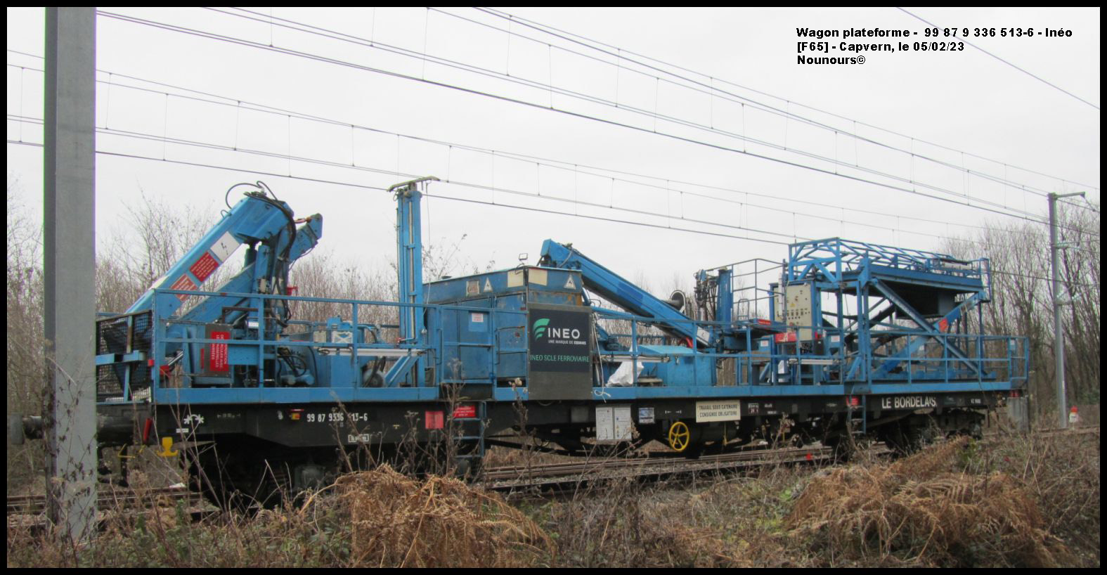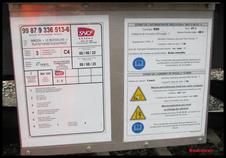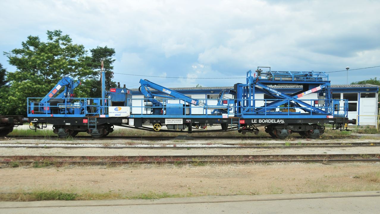 Voici une autre nouveauté ici, "Le Bordelais", un wagon nacelle construit sur un châssis d'un plat UIC, Rs suivant la nomenclature d'aujourd'hui, et "Rory" suivant l'ancienne. On a changé les bogies (d'origine il-y-avait des bogies UIC), et on voit une jolie superstructure en bleu.