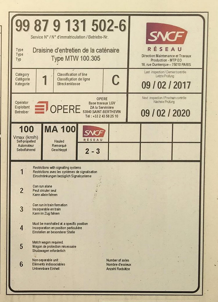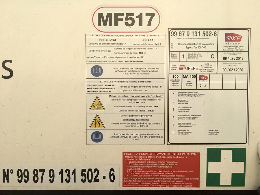 Draisine MTW 100.305- 99 87 9 131 502-6 LGV - EIFFAGE OPERE