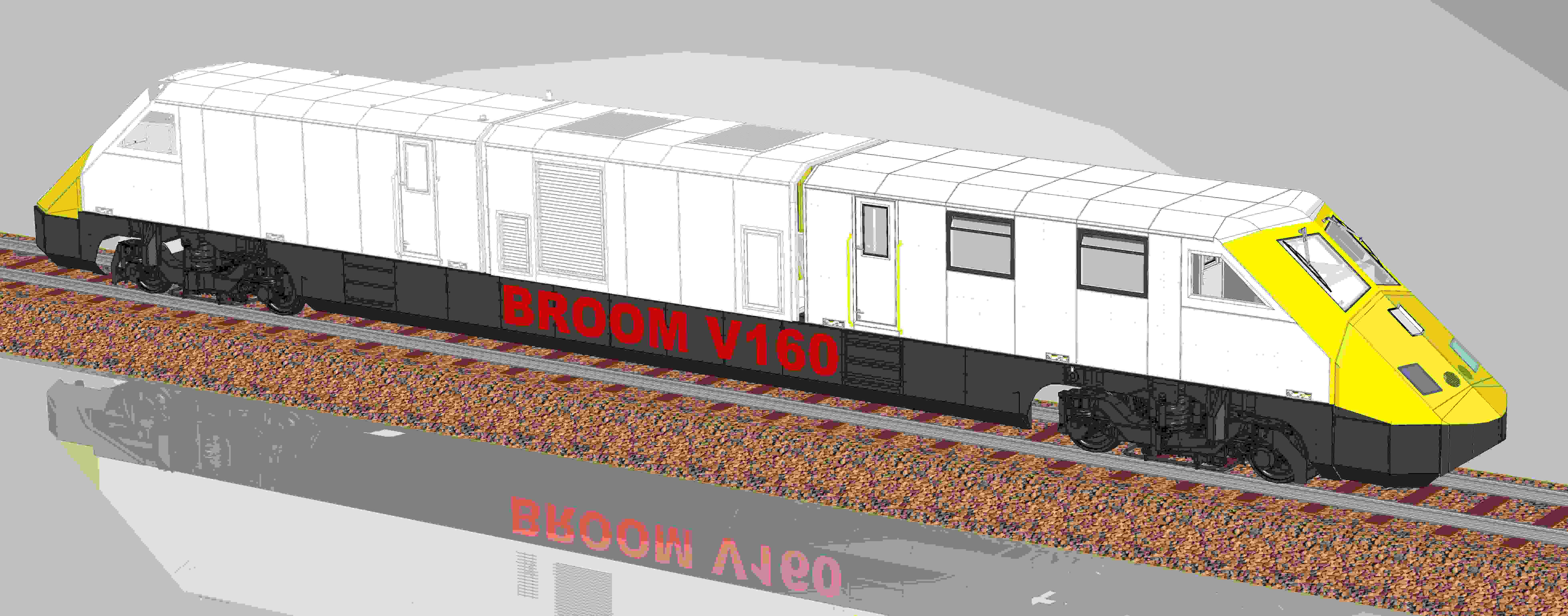 Cet engin complètement nouveau sera monocaisse avec deux boggies type Y223 de feues les RTG équipés chacun d'un frein électromagnétique. Les boggies seront réindustrialisés et donc flambants neufs. BROOM sera équipée de la TVM430 bord. L'aérodynamique sera soignée pour minimiser les consommations de GO.