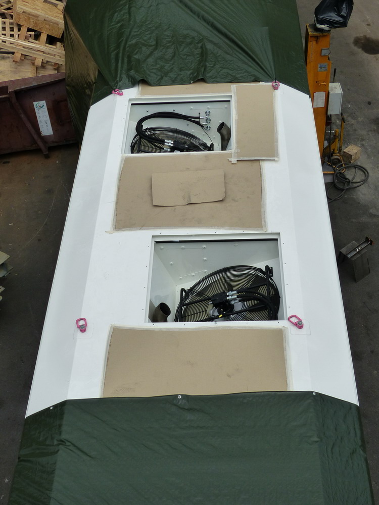 Le module de grue comprend une grue télescopique et une plate-forme de travail à ciseaux, tandis qu'un deuxième module a un atelier avec une plate-forme de travail du toit. Un troisième type est pour la maintenance des lignes aériennes, tandis que le quatrième a un fil de fil caténaire fourni par OMAC d'Italie. Gouin dit que trois modules de grue travaillant ensemble devraient pouvoir soulever et positionner une section de participation de 60 m de long acheminée par train sur la piste adjacente.