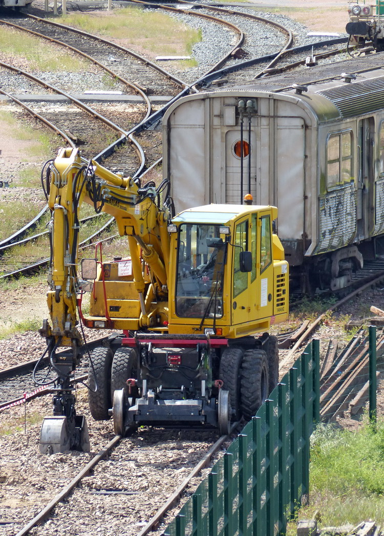 Bientôt des travaux sur la voie de la mort à la sortie Nord du dépôt de Saint Pierre des corps avec changement des traverses avec une Pelle Rail route Atlas 1404 KZW de BRIFER n°