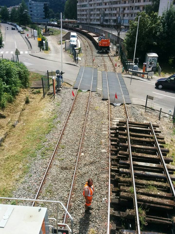 Travaux à Besançon Mouillère le 9 aout 2016 vers 16h (avec des photos de Jonathan Trains Facebook)