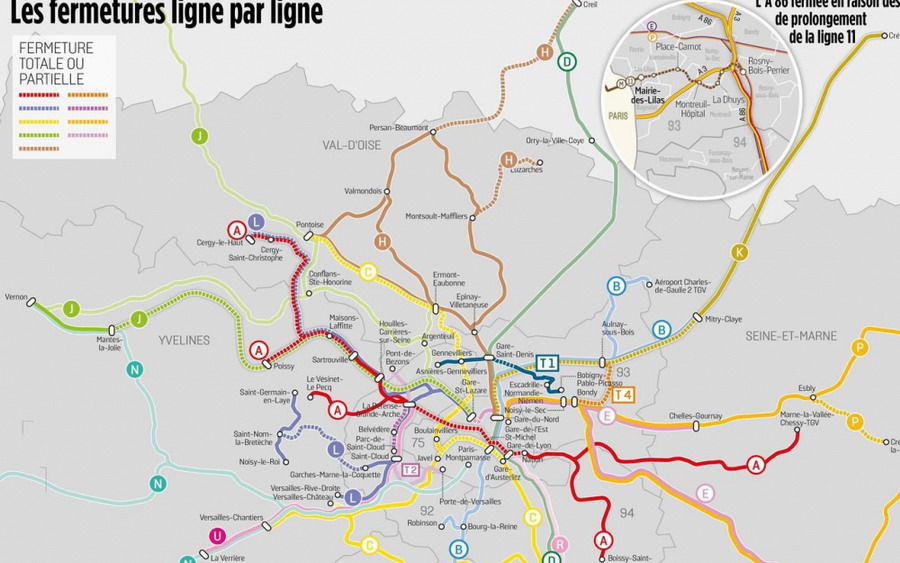 RER D (Villeneuve St Georges, Corbeil-Essonnes), PSL (Saint-Cloud- Versailles Rive droite), Paris Nord (Saint-Denis-Goussainville)