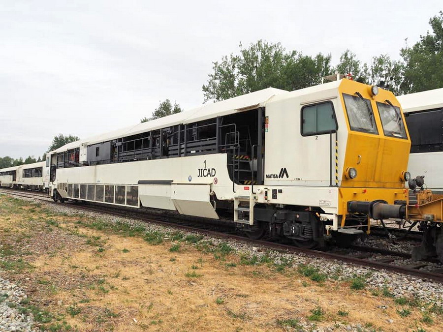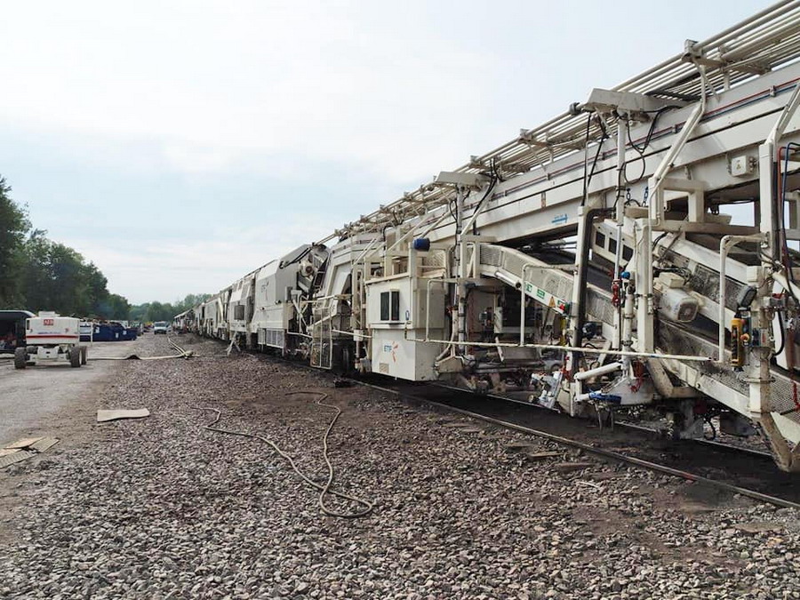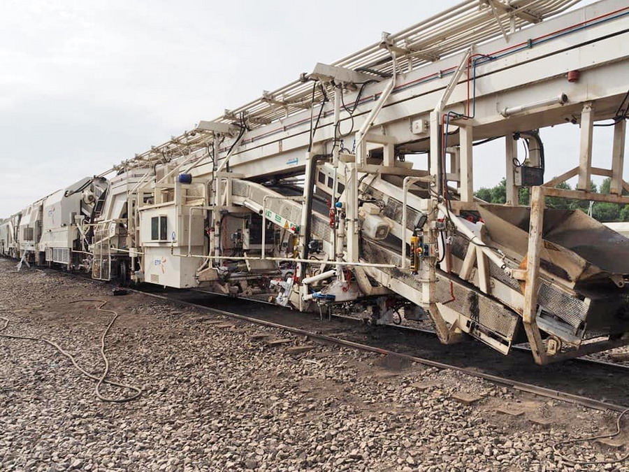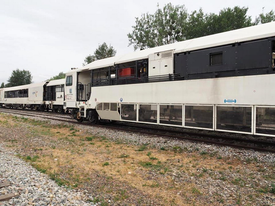 •un train qui gère les traverses, le ballast, le bourrage et la stabilisation