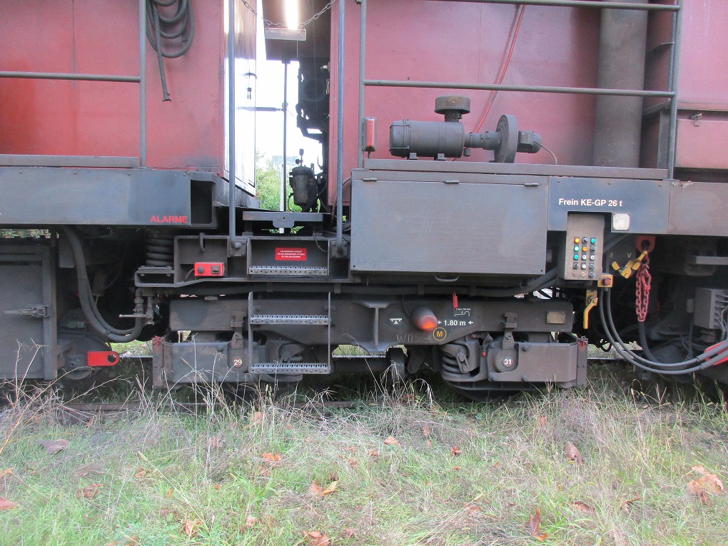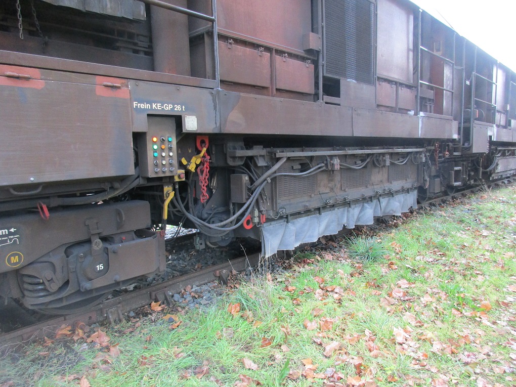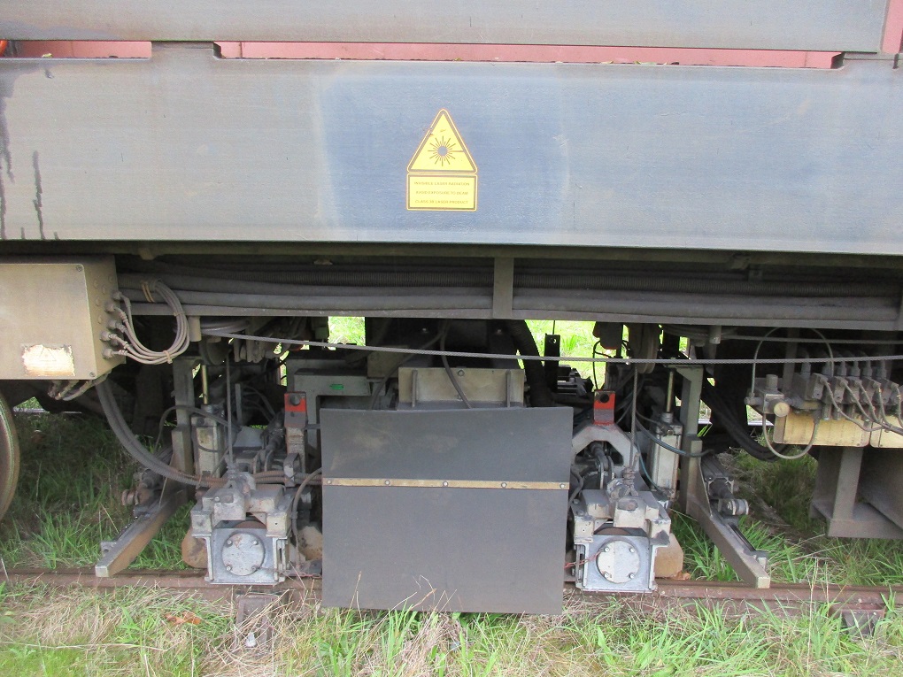 Sur le chantier actuel, elle enlève par meulage la couche décarburée du rail neuf. La suppression de cette couche de protection dure (sortie d'usine) élimine les défauts de fabrication ainsi que les microfissures provoquées par écrasement aux passages des circulations tout en améliorant les caractéristiques générales de résistance du rail. En évoluant, ces cassures provoquent des infiltrations d'eau qui entraînent à leur tour l'apparition de corrosion et de rouille. Les instruments d'analyses et de mesures sont disposés dans les éléments d'extrémité. Ici l'extrémité 1 :