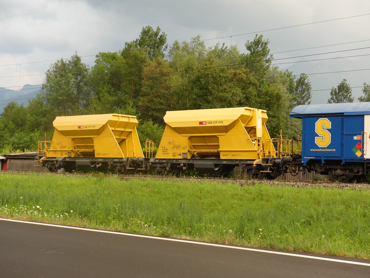 La cribleuse charge les criblures dans des VAD Scheuchzer et Vanoli (pas de photos désolé). Première fois que je vois cette configuration en Suisse.