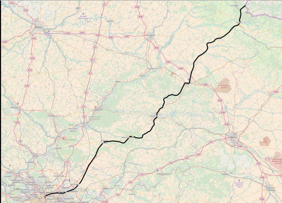 Laon (PK 140,0) à Vervins (PK 178,9) 100 Km/h