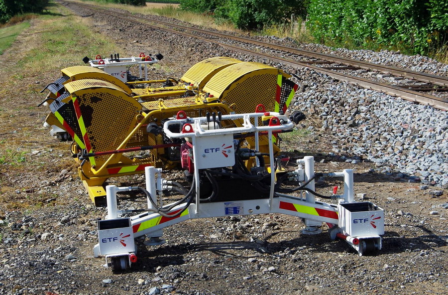 présence de Frappeur de rail MR 5121 Geismar et de Lève-rail hydraulique L2R 522 K Geismar d'ETF