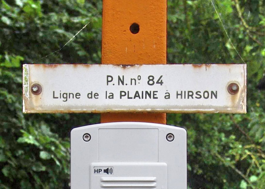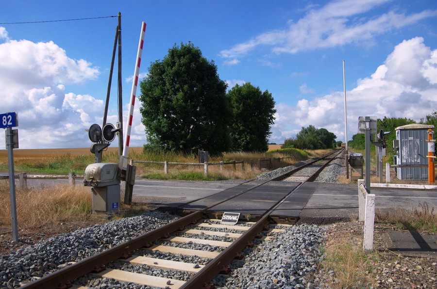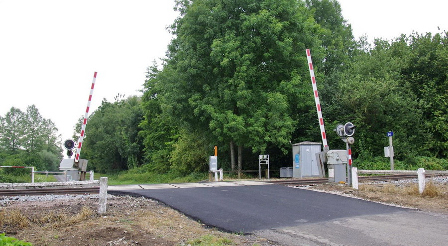 et maintenant le PN n°82 de la gare de Verneuil-sur-Serre PK 149,718 avec un passage routier avec des plaques de la Société STRAIL