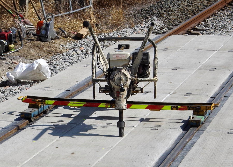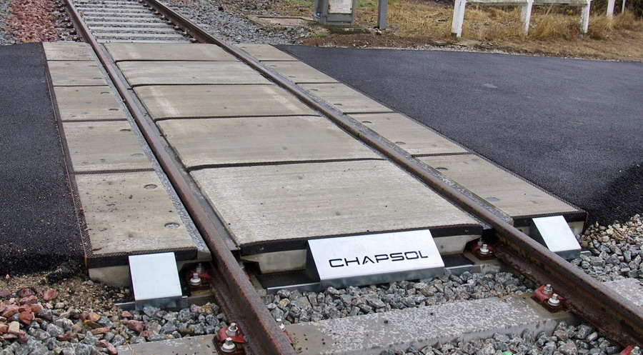 Cette solution a été retenue par la SNCF pour plusieurs réalisations sur le réseau ferré. Les raisons de ce choix ont reposé sur la rapidité de pose des dalles préfabriquées en béton afin de pénaliser le moins possible la circulation routière. La solution à attaches classiques permet de faciliter les interventions de dépannage et d'entretien par rapport à d'autres systèmes de maintien du rail.