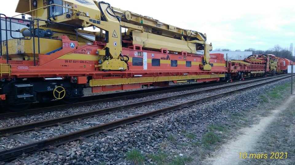 la pelle Cat de chez Railshine arrive lundi à l'Hopital du GrosBois (info du chauffeur)
