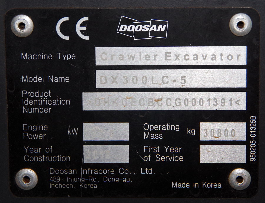 DOOSAN Crawler Excavator DX300LC - 5 n°DHKCECBCCG0001391 - 2010