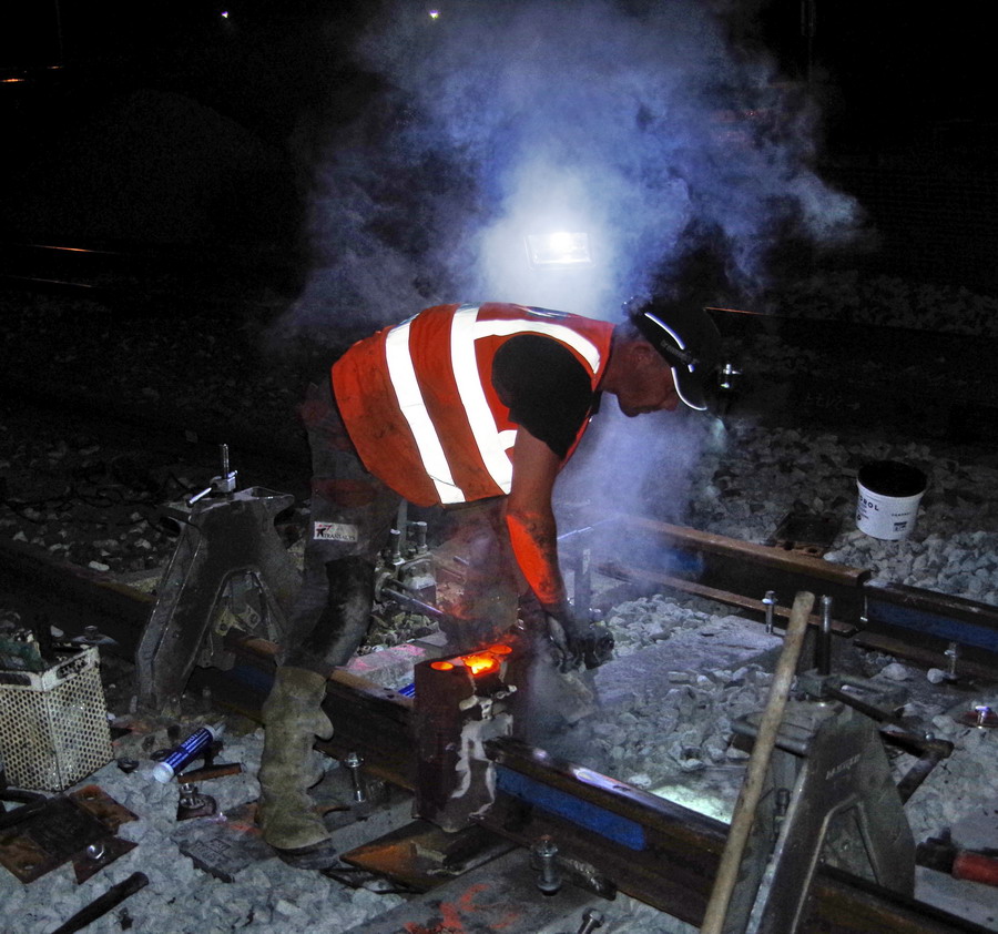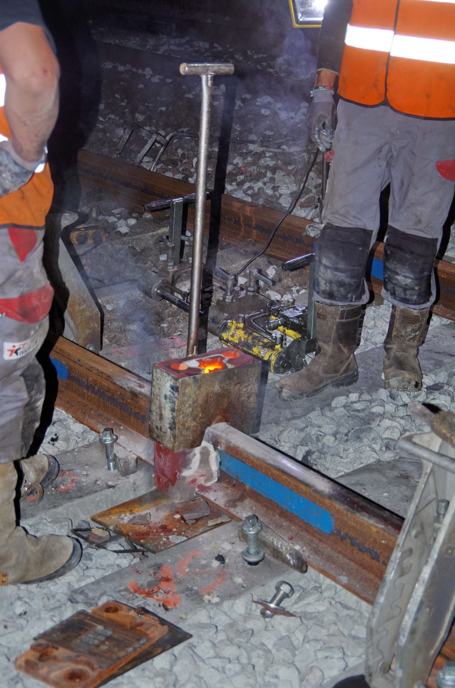 mise en route de la Soudure Aluminothermique au PN 58 à Chauny nuit du 23 au 24-04-2019