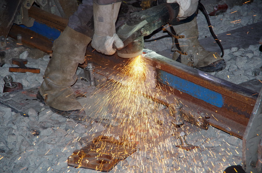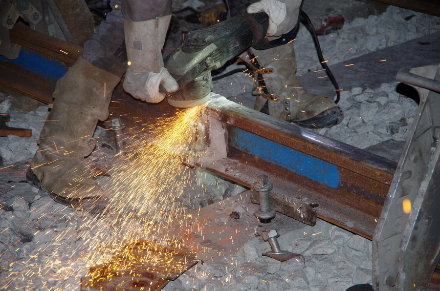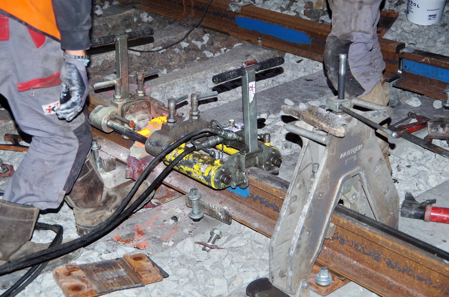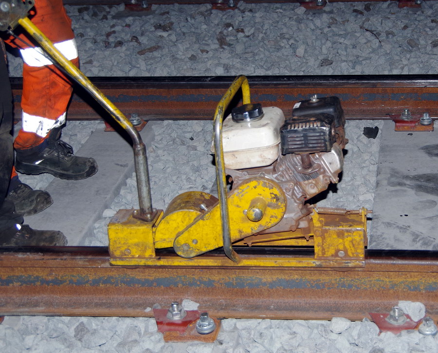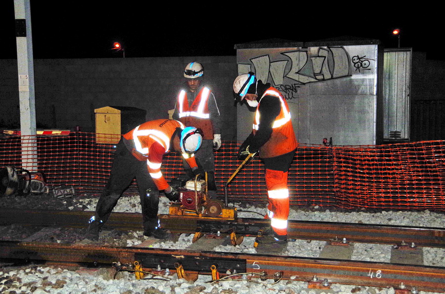 isolant électrique) avec le passage d'une décalamineuse de rail avec possibilité de régler la pression exercée par la roue abrasive
