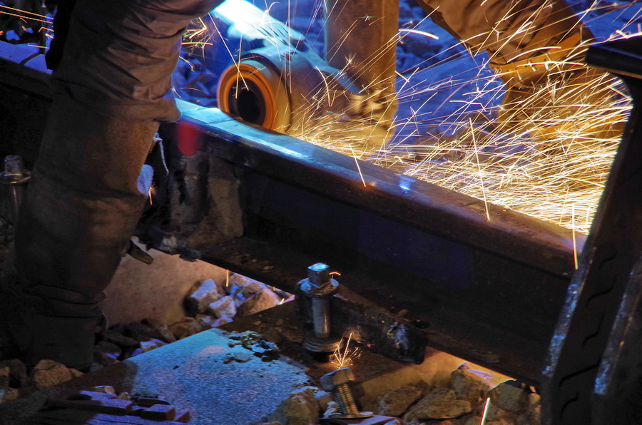 fin de l'ébavurage au PN 58 à Chauny nuit du 23 au 24-04-2019