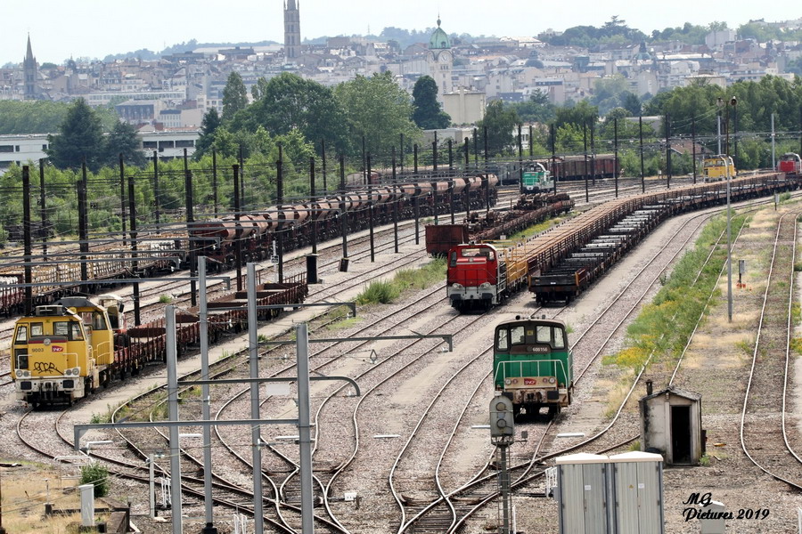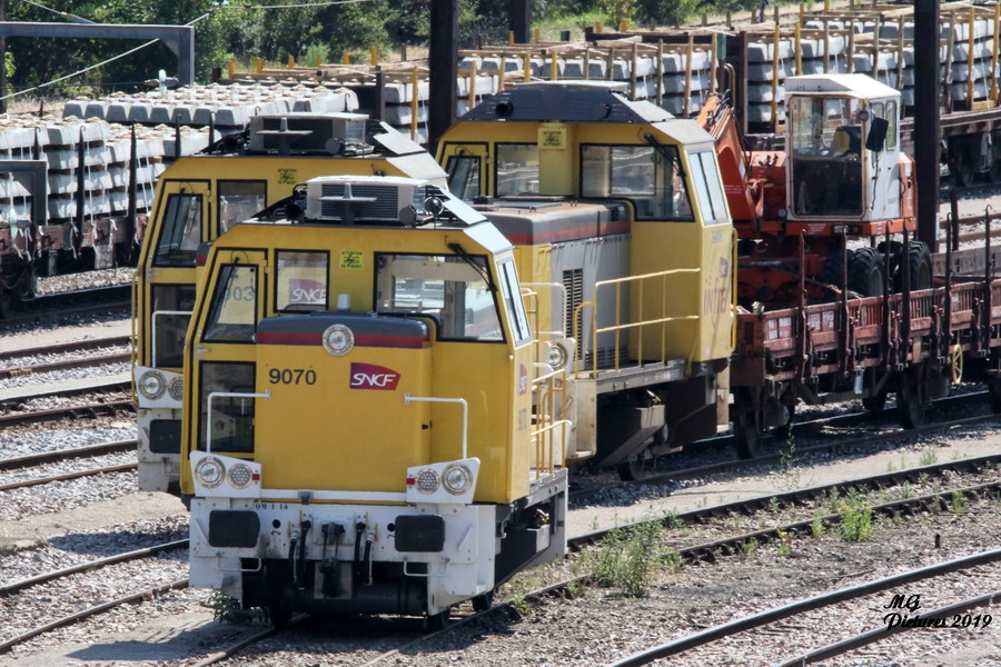 présence des locotracteur Y 9070 / Y 9003 et Y 9006 sur la base de travaux du Puy-Imbert le 03-07-2019