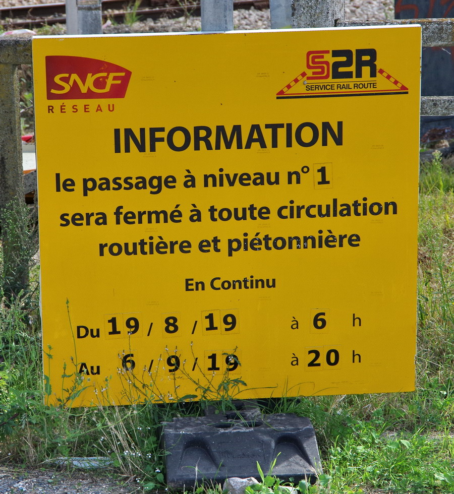 panneau d'information pour la fermeture du PN n°1 sur la commune de Saleux (80) le 27-08-2019