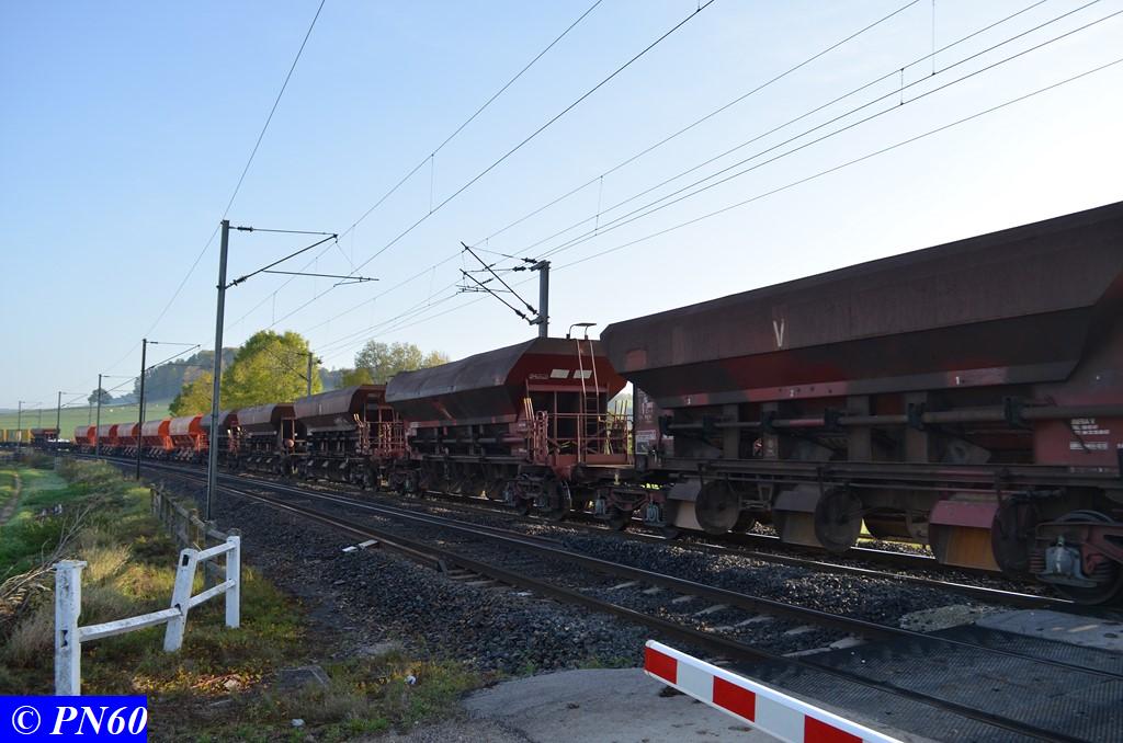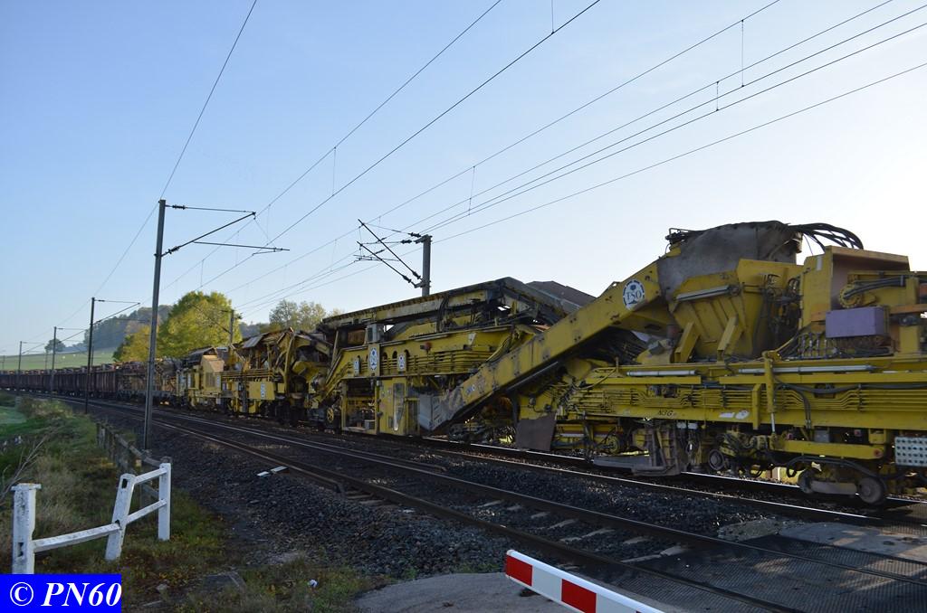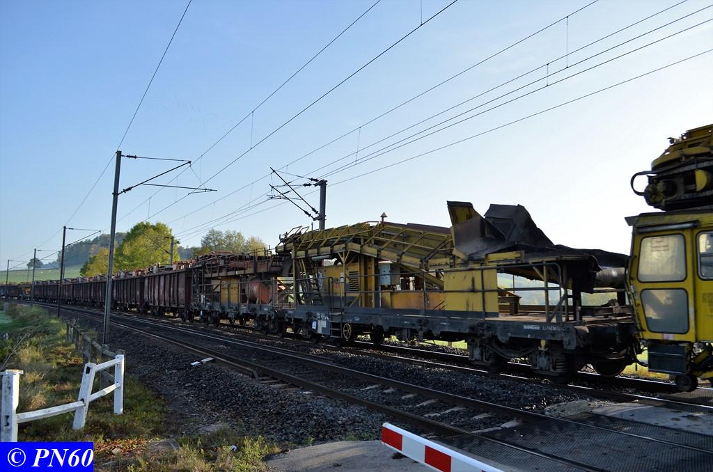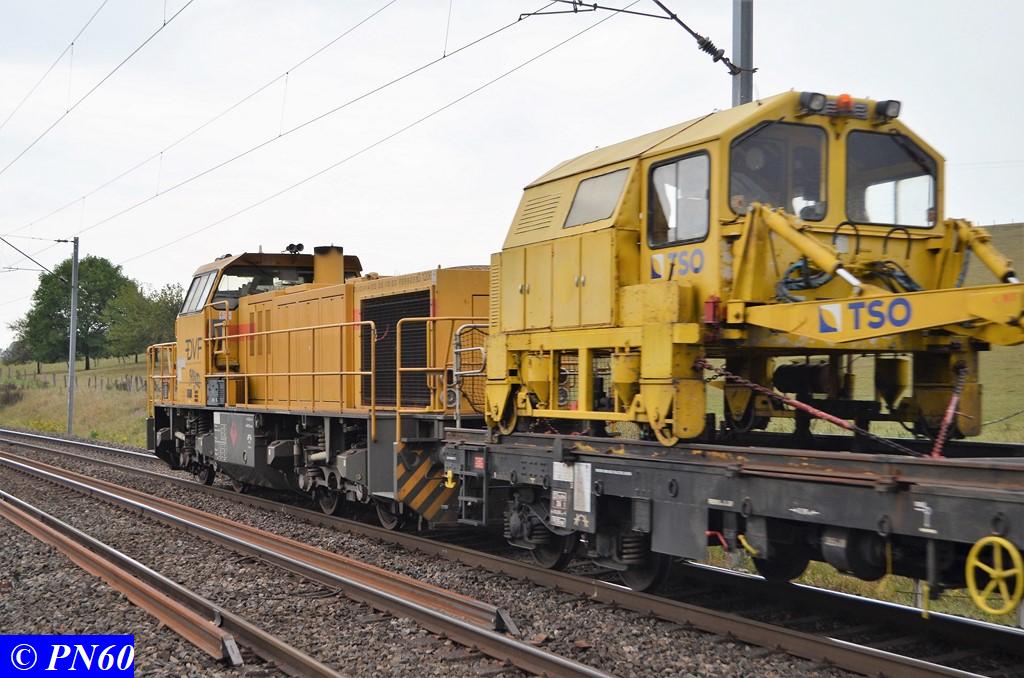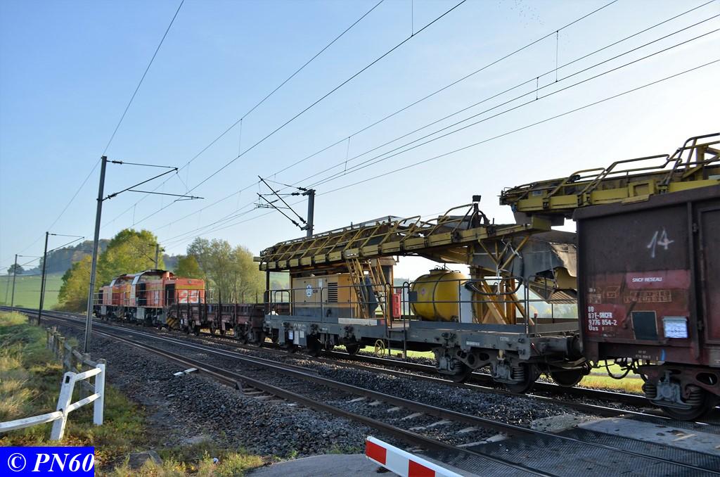 Toujours le 17 octobre 2017 au PN55 de Doncourt sur Meuse, j'ai pu photographier le train tracté par une G.1206 TSO 92 87 0061 772-3 F avec la dégarnisseuse de la même société.